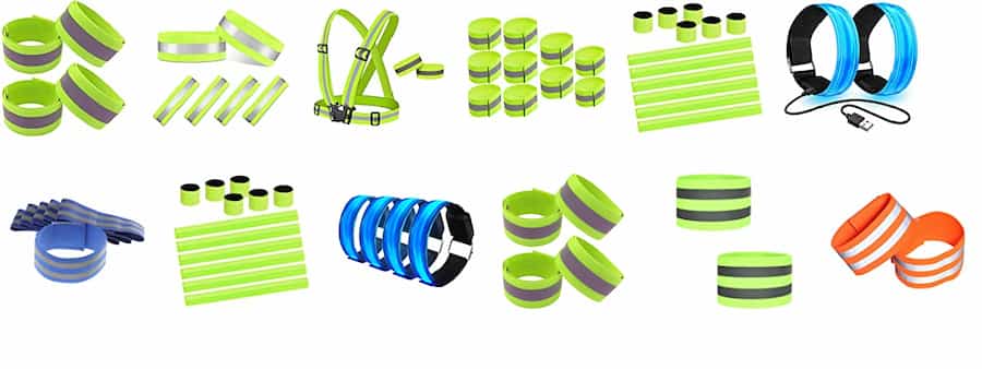 Tenemos a nuestra disposición en las tiendas especializadas, o incluso en tiendas chinas de barrio, un buen número de artefactos reflectivos. Desde cinta de pegar estilo celofán, pegatinas,  brazaletes, chalecos reflectantes -los obligatorios en los automóviles-, serpentillas, colgantes, llaveros, etc para colocar en la cabeza, brazos, cintura, muñecas, tobillos, amarrar a las zapatillas,.....